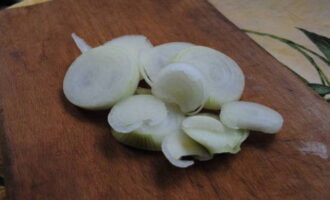 - Pel de ui en snij in halve ringen.