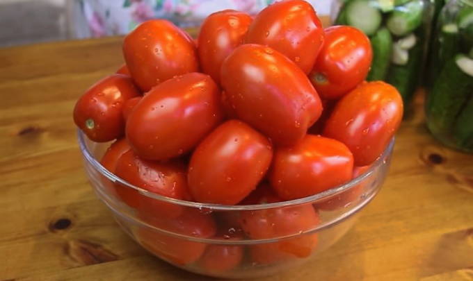 - Laten we in de tussentijd verder gaan met het bereiden van de marinade. Neem hiervoor vlezige tomaten en spoel ze goed af onder stromend water.