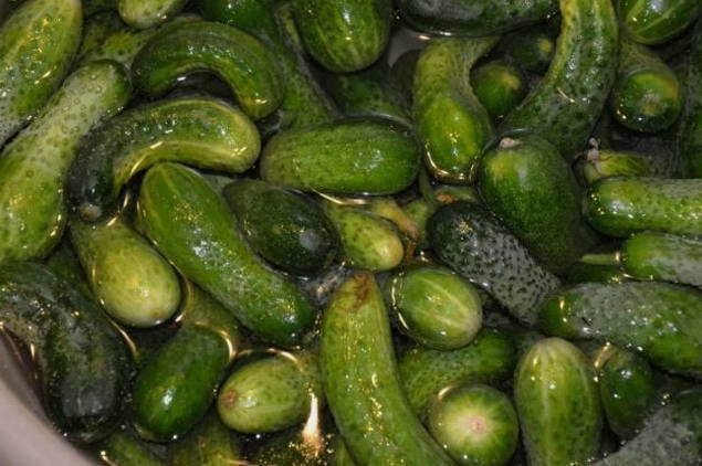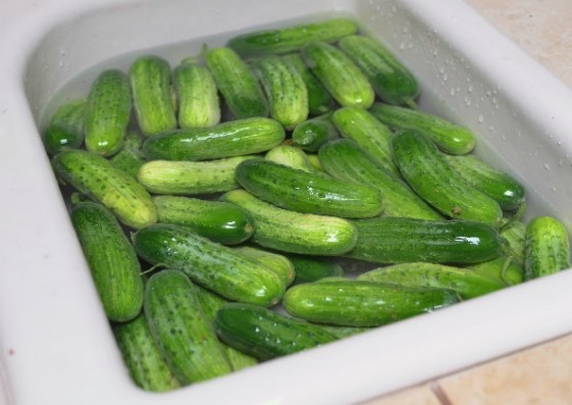 - We wassen alle komkommers goed, weken ongeveer een uur in koud water om zand en vuil volledig te verwijderen.