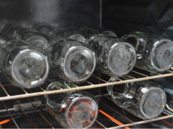 - Van deze hoeveelheid ingrediënten krijgen we blikken van vier liter. Ondertussen steriliseren we eerst de blikjes. Je kunt zowel een oven als een magnetron gebruiken.