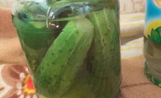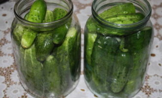 We wassen de komkommers met stromend water en leggen ze meteen in een bak. Vul ze met koud water en laat 2-3 uur staan. We pellen de knoflook van de schil. Snijd 2 kruidnagels in plakjes. Doe de komkommers in een pot en bestrooi ze met knoflook.