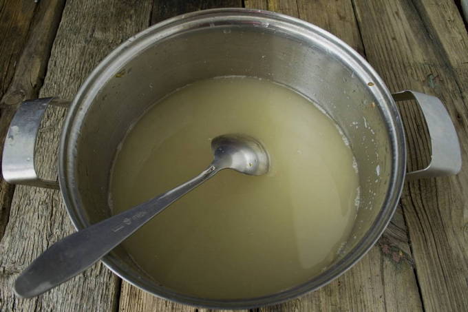 - Giet water in een aparte container (pan). We zetten het op het fornuis. Voeg zout toe aan de vloeistof en breng aan de kook. Giet de ingrediënten in een pan met gezouten kokend water. Dan afdekken en 3 dagen laten staan. Wanneer er schuim bovenop verschijnt, kunnen we doorgaan naar de volgende fase.