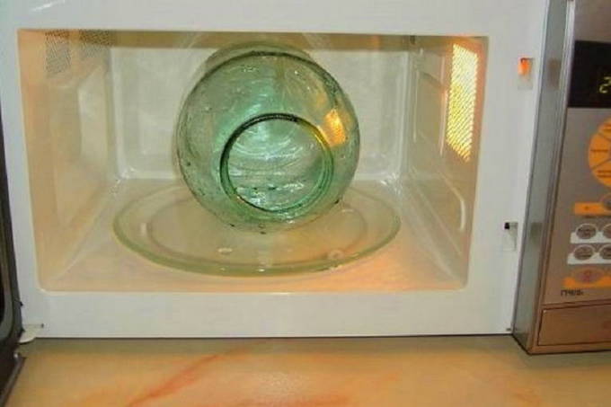 - We steriliseren de container voor toekomstige naden op een handige manier: eerst controleren we op defecten, daarna spoelen we af met frisdrank en plaatsen we deze in de oven of magnetron.