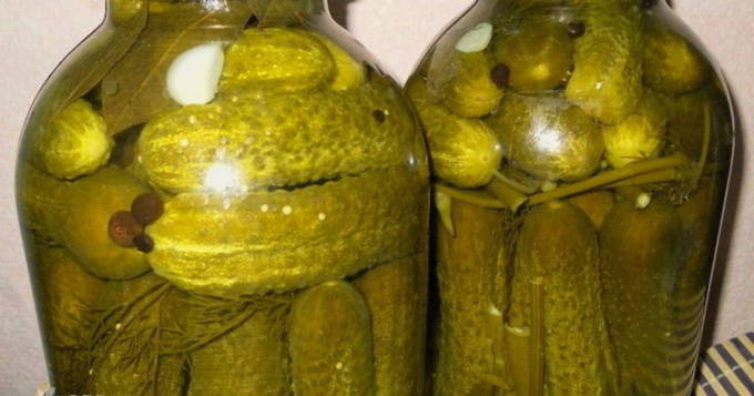 - Roer in kant-en-klare potten de kruiden, knoflook, een mengsel van pepers naar smaak. Daarna doen we komkommers in potten. Giet water in een pan en voeg zout en suiker toe. Breng het mengsel aan de kook. We sturen citroenzuur naar de vloeistof en vullen de inhoud van de potten met marinade.