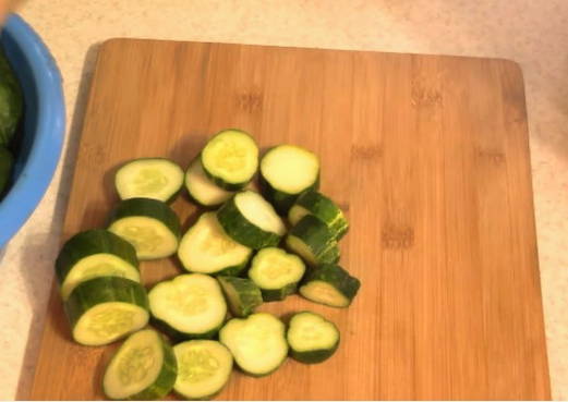 - Snijd de komkommers vrij grof.