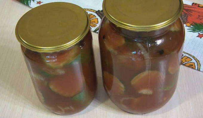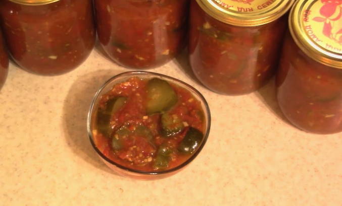 Om de winter lekker te maken, moeten recepten al in de zomer worden gezocht. Komkommers in tomatensaus zijn een geweldige vervanging voor groentesalades buiten het seizoen en passen perfect bij al je bijgerechten. Kies hetzelfde recept en stel het koken niet uit.