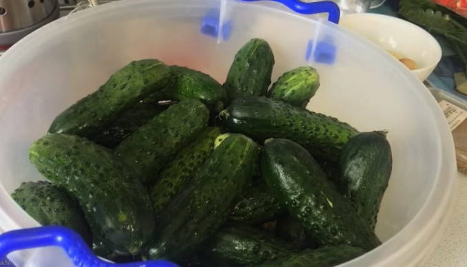 - Week de komkommers ongeveer 6 uur voordat ze worden gekookt. Daarna wassen we ze weer goed en verwijderen we de uiteinden.