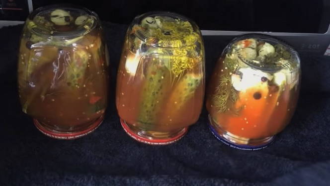 Bedek de komkommers met voorbereide deksels en laat ze ondersteboven afkoelen. Bedekken met een deken of niet is uw keuze.