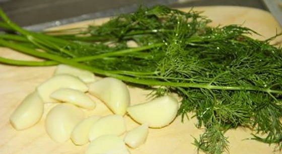 - Doe in elke pot dezelfde hoeveelheid dille, knoflook, mosterdzaad en een laurierblaadje.