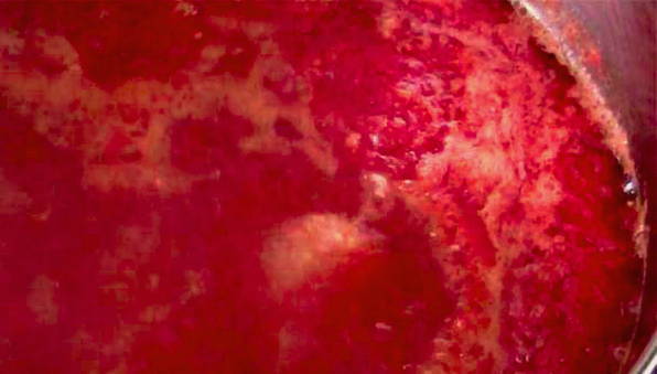 - Giet het sap in een pan met dikke bodem, breng aan de kook en kook 5 minuten.