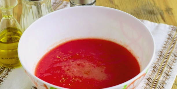 Voor een dergelijke bereiding kunt u kant-en-klare tomatenpuree of verse tomaten gebruiken. Beide opties zijn heerlijk en hartig, terwijl de plakjes komkommer stevig en knapperig blijven.
