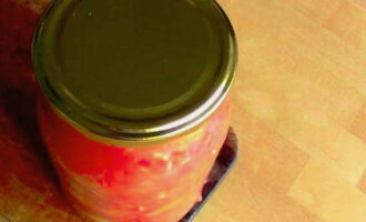 - Verspreid de salade in gesteriliseerde potten, sluit ze af met deksels. Koel de naad af bij kamertemperatuur en bewaar op een koele plaats.