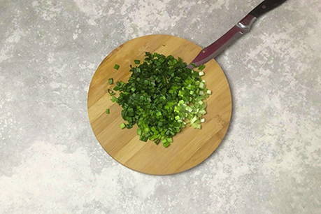 Je kunt elke groente naar eigen smaak nemen, deze fijn hakken met een mes en toevoegen aan de rest van de ingrediënten.