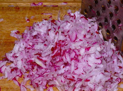 Was radijs en komkommer en rasp op een middelgrote rasp.