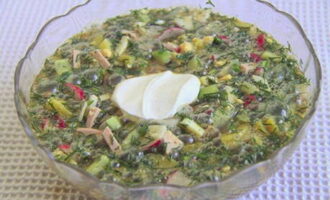 Als je van spanning en hartig eten houdt, dan mag dit recept zeker niet ontbreken. Deze versie van okroshka stimuleert en verfrist bij warm weer. En qua vitaminesamenstelling is er nauwelijks soep mee te vergelijken.