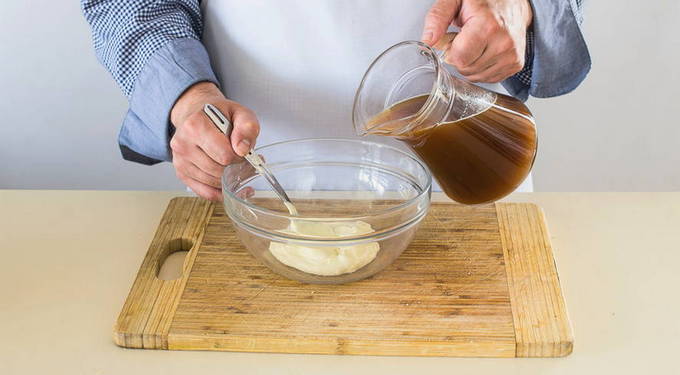 Meng in een aparte container kwas, kefir en mosterd.