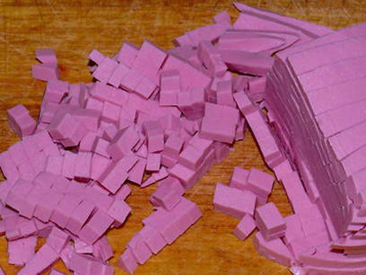 Snijd de worst in kleine blokjes.