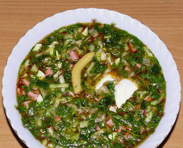 - Okroshka op kwas en zure room thuis