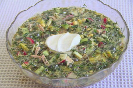- Okroshka op kwas en zure room thuis
