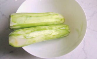 We wassen de geschilde courgette goed en vegen deze af met een katoenen handdoek.