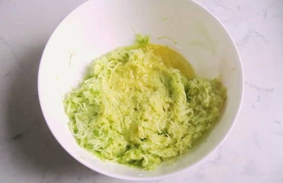 - Drijf een kippenei in de geperste courgette en meng.