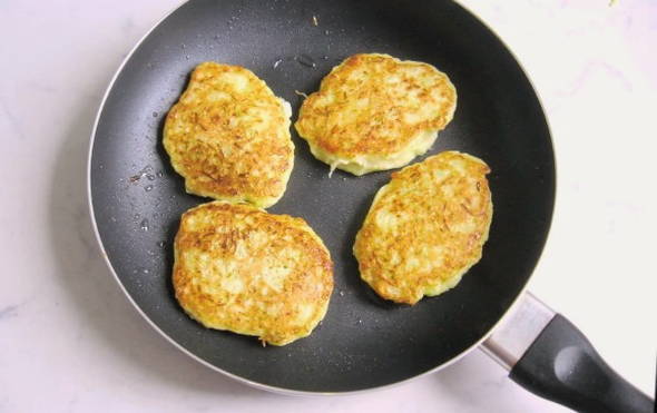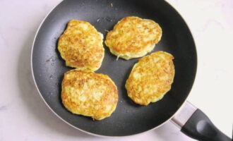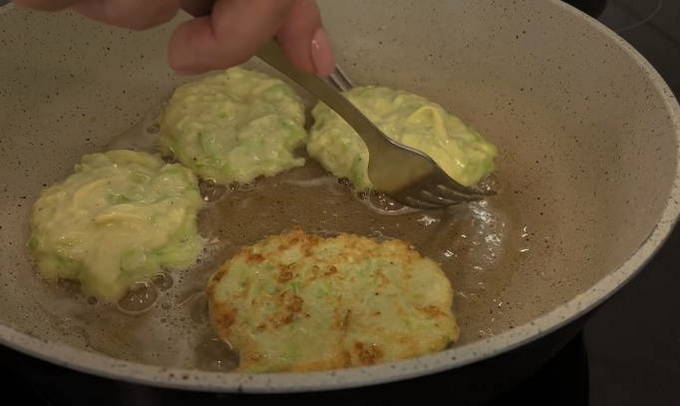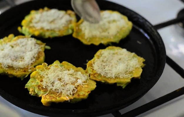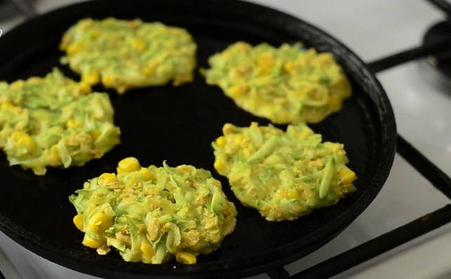 - Verdeel de courgettemassa met een eetlepel over een hete koekenpan. En kook op middelhoog vuur, bak aan elke kant tot ze goudbruin zijn.