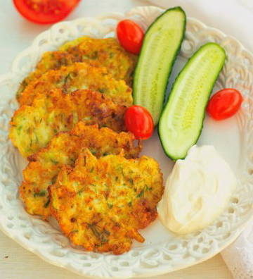 Als je de neutrale courgettesmaak beu bent, raden we je aan om de toevoeging van allerlei soorten groenten met kaas niet te verwaarlozen. Een uitgebalanceerde smaak en een rijk aroma wachten op u, die de delicate en luchtige pannenkoeken niet zullen bederven. Probeer het gerust en je zult slagen.