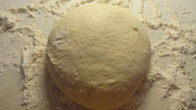 - Wanneer het deeg opkomt, giet je kefir bij kamertemperatuur, voeg je zout en gezeefde bloem toe, kneed het deeg. Voeg tot slot 30 gram gesmolten boter toe en kneed het deeg opnieuw. Laat het deeg 30-60 minuten op een warme plaats rijzen.