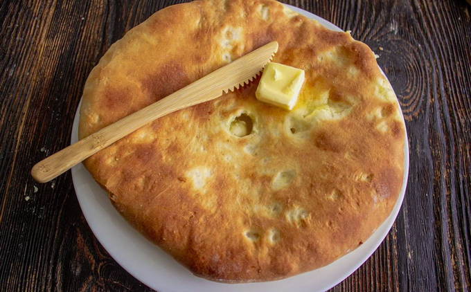 - Bak de Ossetische taarten 15-20 minuten in de oven op 180 graden. Bestrijk warme cakes met boter en serveer.