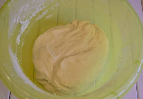 - Voeg vervolgens de zachte boter toe aan het deeg en roer het volledig door. Laat het deeg een uur op een warme plaats rijzen.