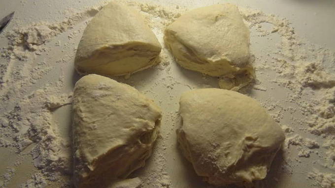 Verdeel het deeg in 4 delen.