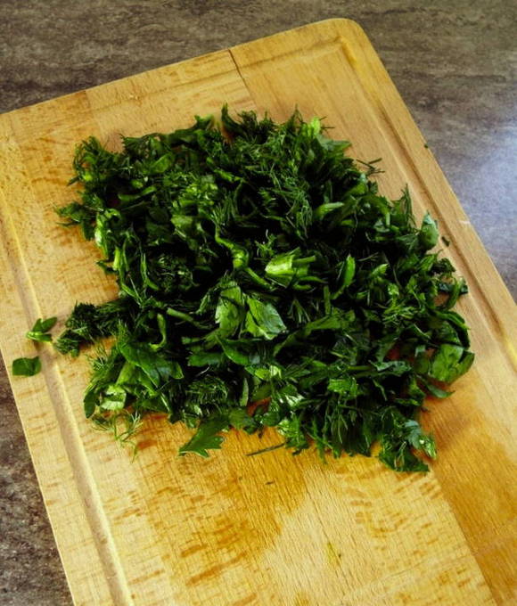 - Voeg aan het einde van het stoven gehakte dille toe en roer.