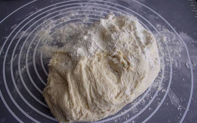 - Leg het deeg op een met bloem bestoven werkvlak.