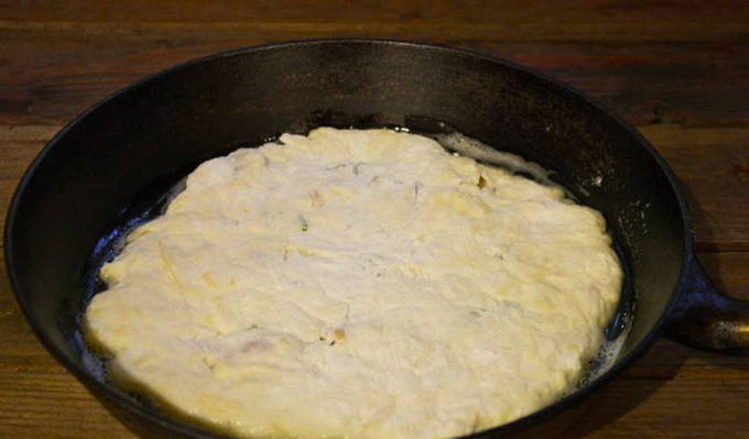 - Snelle Ossetische taart met kaas in een pan