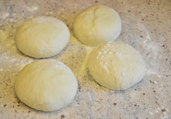 - Verdeel het bij elkaar passende deeg in 4 delen.