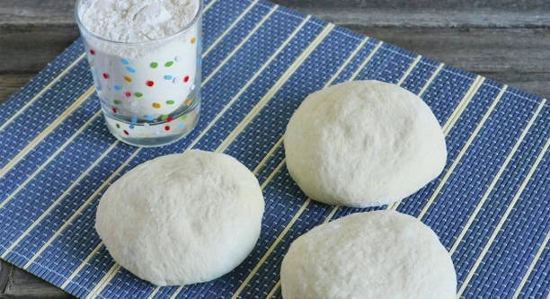 - Verdeel het deeg in 3 gelijke delen en laat 10 minuten rijzen.