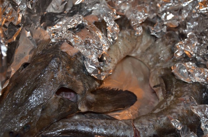 - We wikkelen de vis in folie, gebruiken indien nodig twee vellen.