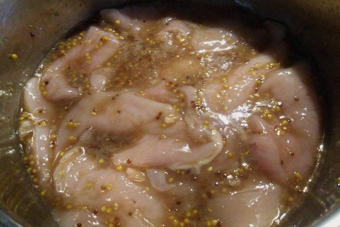 - Heerlijke kipfilet karbonades in een pan met mosterd