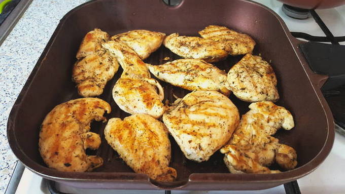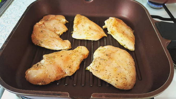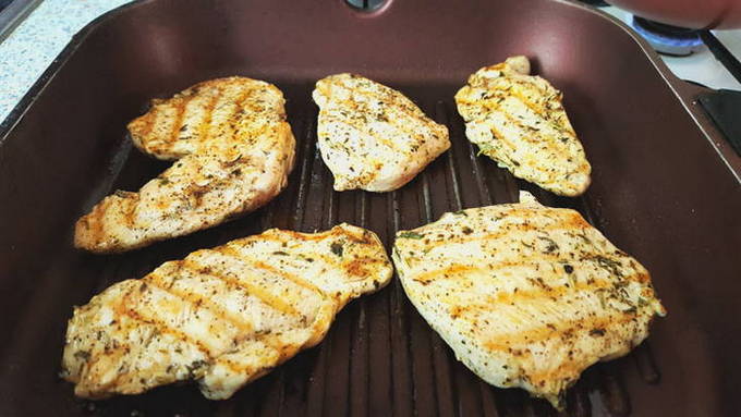 Een grillpan is een heel handig ding in de keuken. Het kenmerk is de geribbelde onderkant. Het imiteert het grillrooster en hierdoor zijn de gerechten die erop worden bereid sappig en vetarm. Kippenkoteletten zijn geen uitzondering!