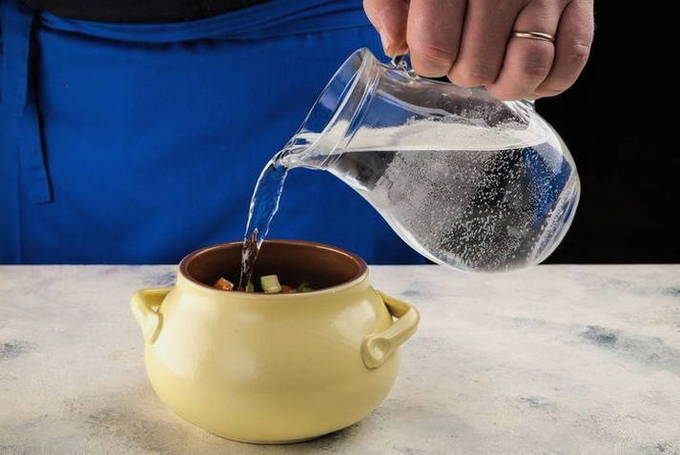 - Giet genoeg water in elke pot om de groenten te bedekken. Plaats de potten in een voorverwarmde oven op 180 graden en bak gedurende 1 uur. Zet vervolgens de oven uit en laat de groenten nog 20 minuten staan.