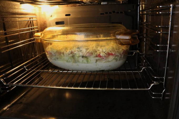 - Sluit de vorm met een deksel en bak de groenten 40-60 minuten in de oven op 200 graden.