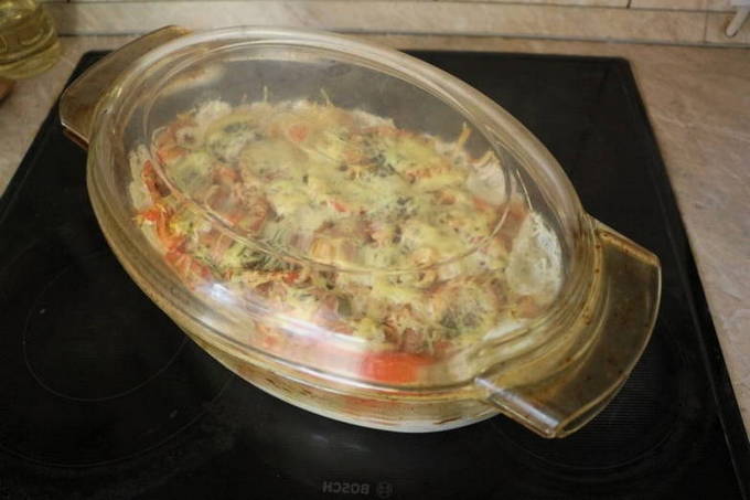 Groenten en kaas kunnen worden gebruikt om een licht maar stevig diner te maken. Bovendien behouden in de oven gebakken groenten hun nuttige eigenschappen en al hun sappigheid. Door de gesmolten cheesecap ziet het gerecht er nog smakelijker uit.