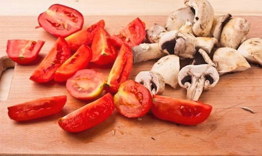 - Was de tomaten. Snijd kleine groenten in vieren, grotere in blokjes.