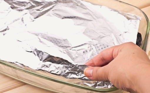 Bedek de ovenschaal met folie, leg de groenten neer.