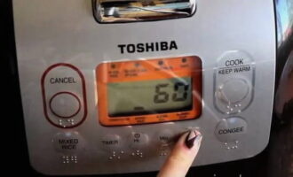 - We sluiten de multicooker met een deksel en stellen de "Quenching" -modus ongeveer een uur in.