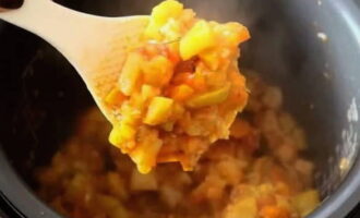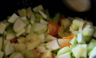We plaatsen alle groenten in de multicooker-kom en laten sudderen.