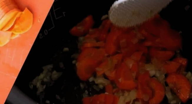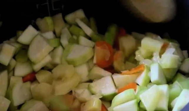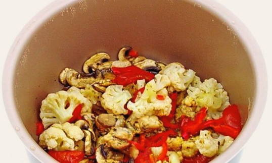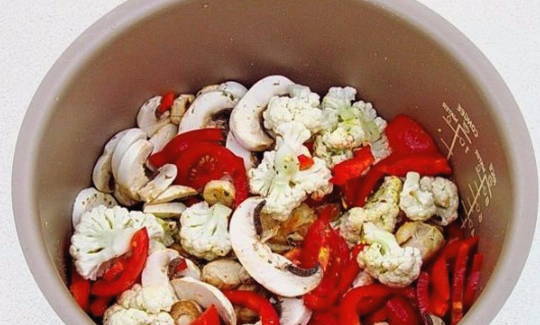 - Voeg groenten toe aan de multikoker.