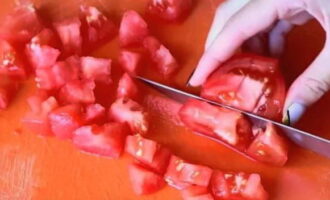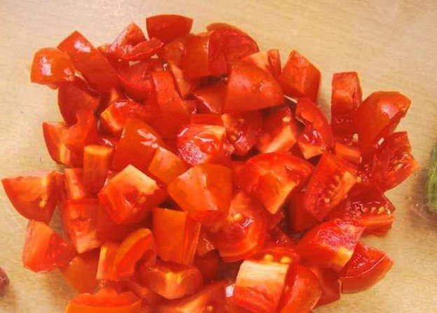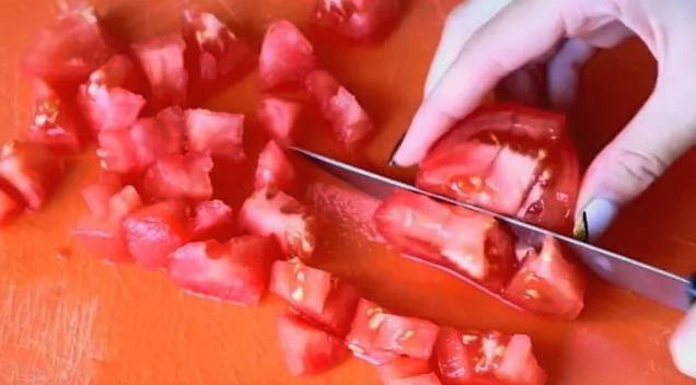 - Snijd de tomaten in grote blokjes.