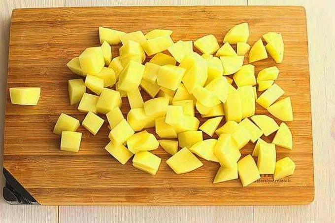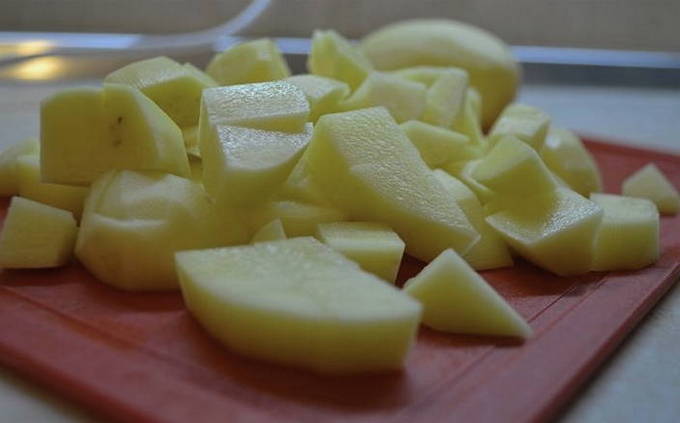- We wassen de groenten met koud water. Schil de aardappelen en snijd ze in kleine blokjes.