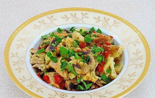 Een stevig en smakelijk gerecht dat perfect is voor zowel lunch als diner. Zo'n stoofpot wordt snel en gemakkelijk bereid en het kippenvlees erin blijkt bijzonder mals te zijn.